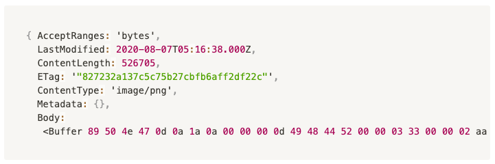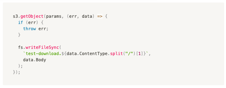 다운로드할 파일의 정보를 가져오기 위한 aws-sdk 의 getObject 메서드