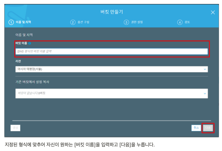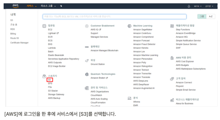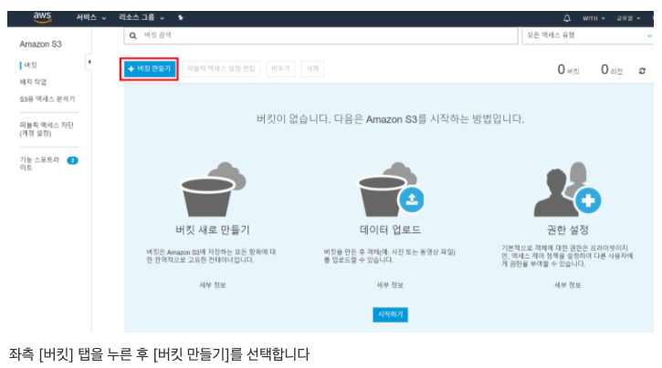 AWS S3 서비스에선 "버킷"이라는걸 통해 실질적인 스토리지를 생성합니다.