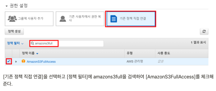 - 이 두개의 키는 AWS에서 S3에 접근 가능한 IAM User를 생성하면 발급된다.