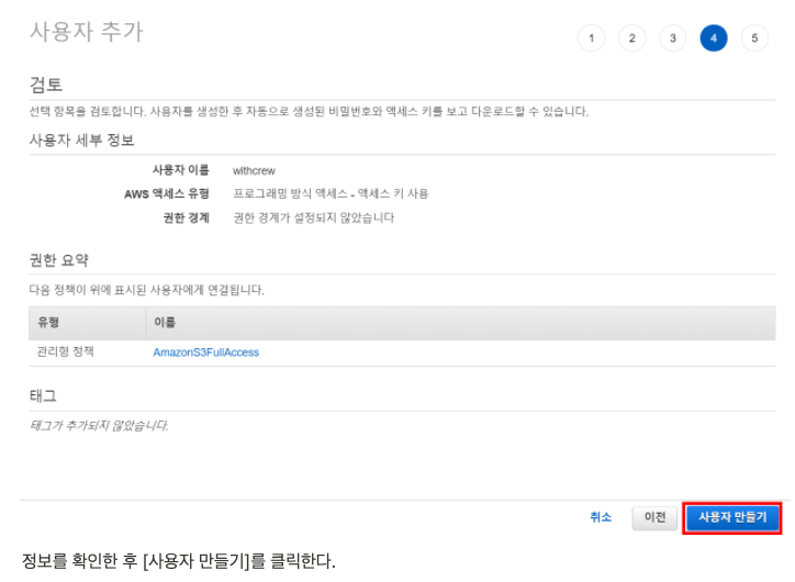 - S3 버킷 생성, IAM 사용자 생성 및 설정